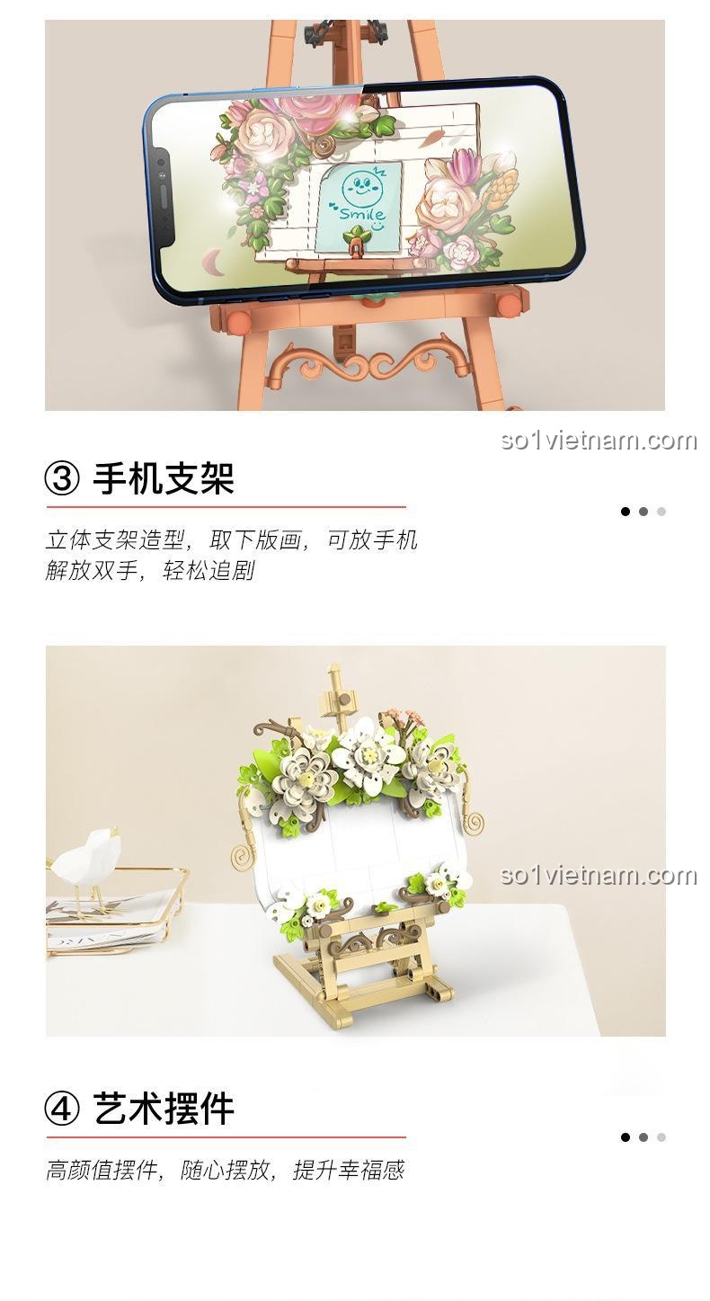 • Giá đỡ điện thoại: Chỉ cần một thao tác nhỏ, chiếc giá vẽ nghệ thuật này có thể biến thành một giá đỡ điện thoại vững chãi, giúp bé rảnh tay khi xem video bài giảng, gọi điện cho bạn bè hay xem các chương trình giải trí.
