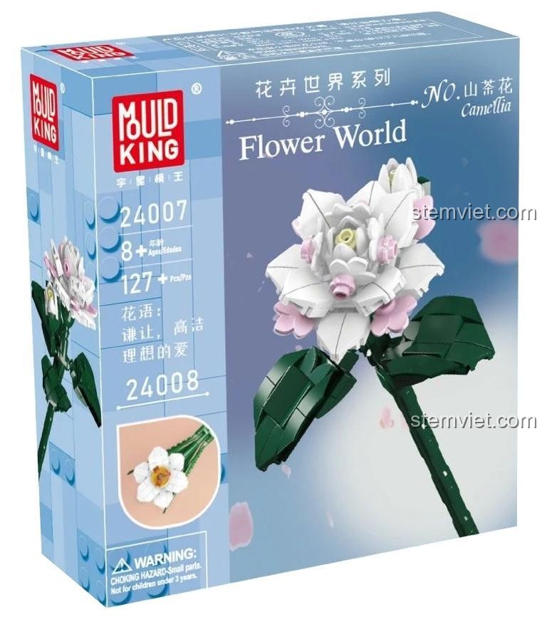 Hoa Trà (Camellia) từ lâu đã là biểu tượng của sự khiêm nhường, vẻ đẹp cao quý và một tình yêu lý tưởng, trong sáng. Loài hoa này không khoe sắc rực rỡ, không ngát hương nồng nàn, mà thu hút người ta bởi vẻ đẹp tinh khôi, thanh lịch và đầy duyên ngầm. Tặng một cành hoa trà cũng giống như gửi gắm một lời chúc về sự thanh cao, một tâm hồn đẹp. Với đồ chơi mô hình Mould King, câu chuyện về loài hoa thanh tú này được tái hiện một cách sống động qua từng mảnh ghép, cho phép bé không chỉ chiêm ngưỡng mà còn tự tay tạo ra vẻ đẹp ấy.