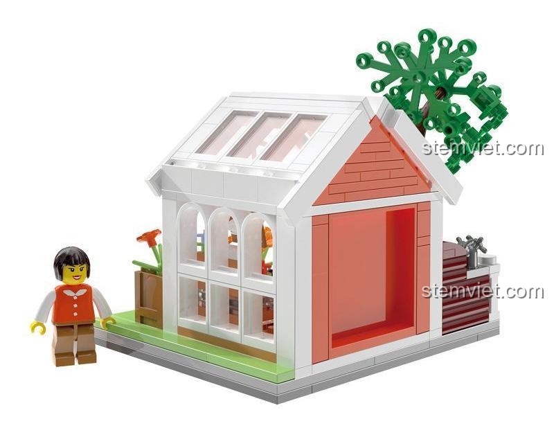 Kích thước mô hình sau khi hoàn thiện là 10.7 cm chiều dài, 7.9 cm chiều rộng và 9.7 cm chiều cao, vừa vặn để trưng bày trên bàn học, kệ sách hoặc bất kỳ không gian nhỏ nào. Đặc biệt, bộ đồ chơi mô hình 00291 còn đi kèm một minifigure cô gái làm vườn đáng yêu, với trang phục đơn giản nhưng đầy sức sống, sẵn sàng cùng bé chăm sóc khu vườn tí hon. Từng chi tiết nhỏ như vòi nước, hàng rào trắng hay những tán cây xanh mướt đều được tái hiện tỉ mỉ, mang đến một tổng thể sống động và cuốn hút.