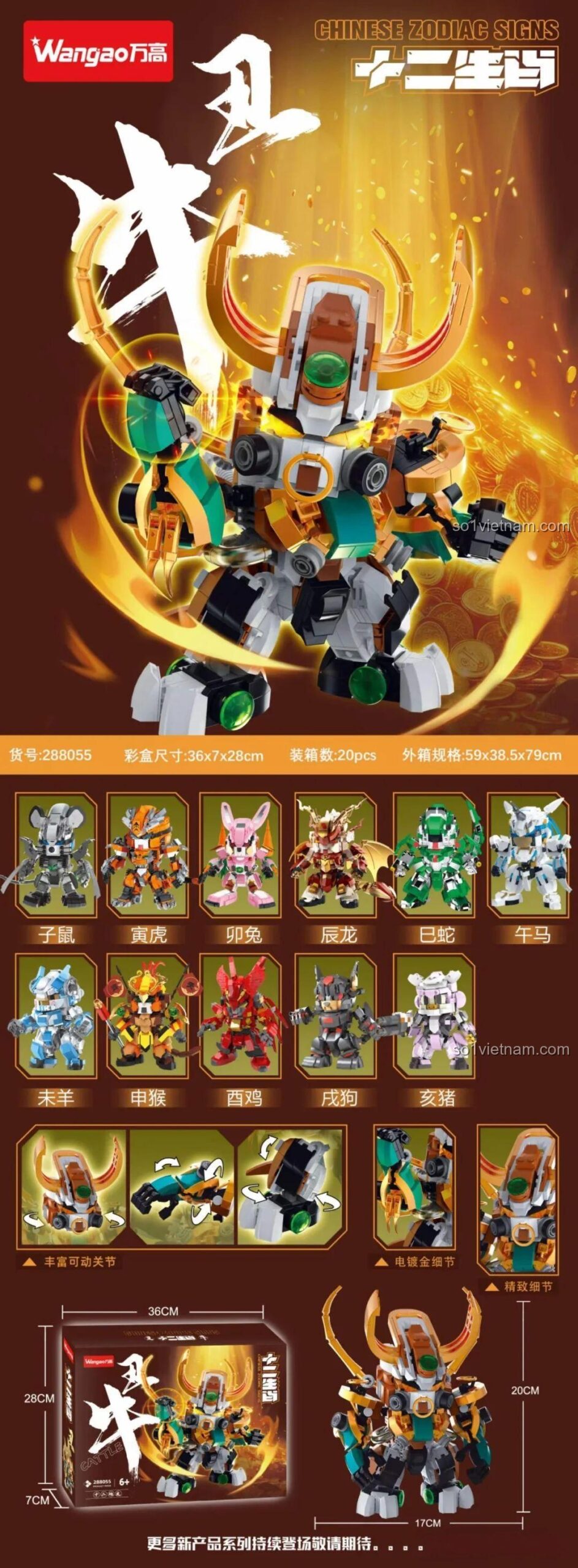 Với thiết kế độc đáo, lấy cảm hứng từ hình tượng Trâu Vàng mạnh mẽ, kết hợp với phong cách robot cơ khí đầy ấn tượng, Wangao 288055 hứa hẹn sẽ mang đến những giờ phút giải trí tuyệt vời, kích thích sự tò mò và sáng tạo không ngừng cho các bé.