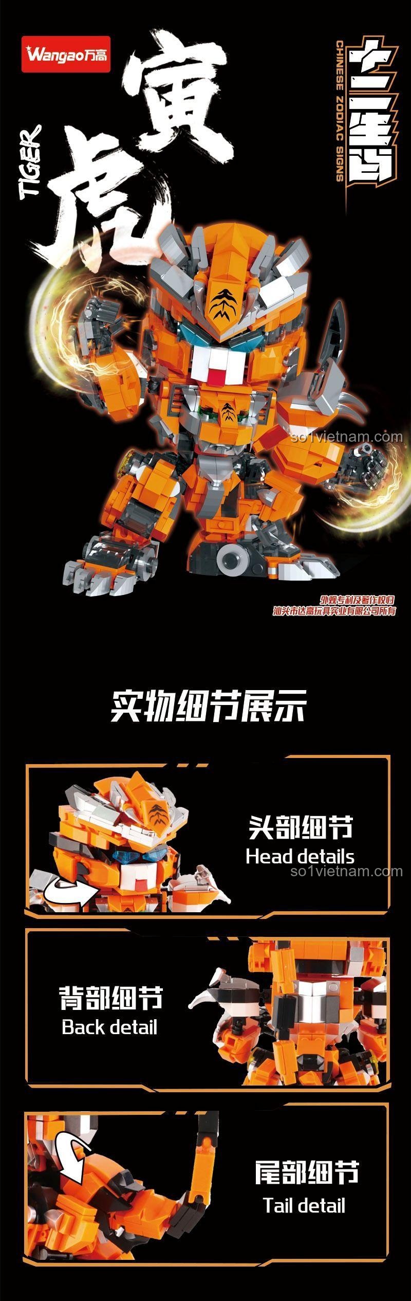 Điểm nhấn độc đáo và hấp dẫn nhất của bộ lắp ghép Wangao 288056 chính là khả năng biến hình “thần kỳ”. Sau khi hoàn thành mô hình hổ, bé có thể dễ dàng tháo lắp và sắp xếp lại các bộ phận để biến nó thành một robot chiến đấu mạnh mẽ, sẵn sàng cho những trận chiến trong trí tưởng tượng.
