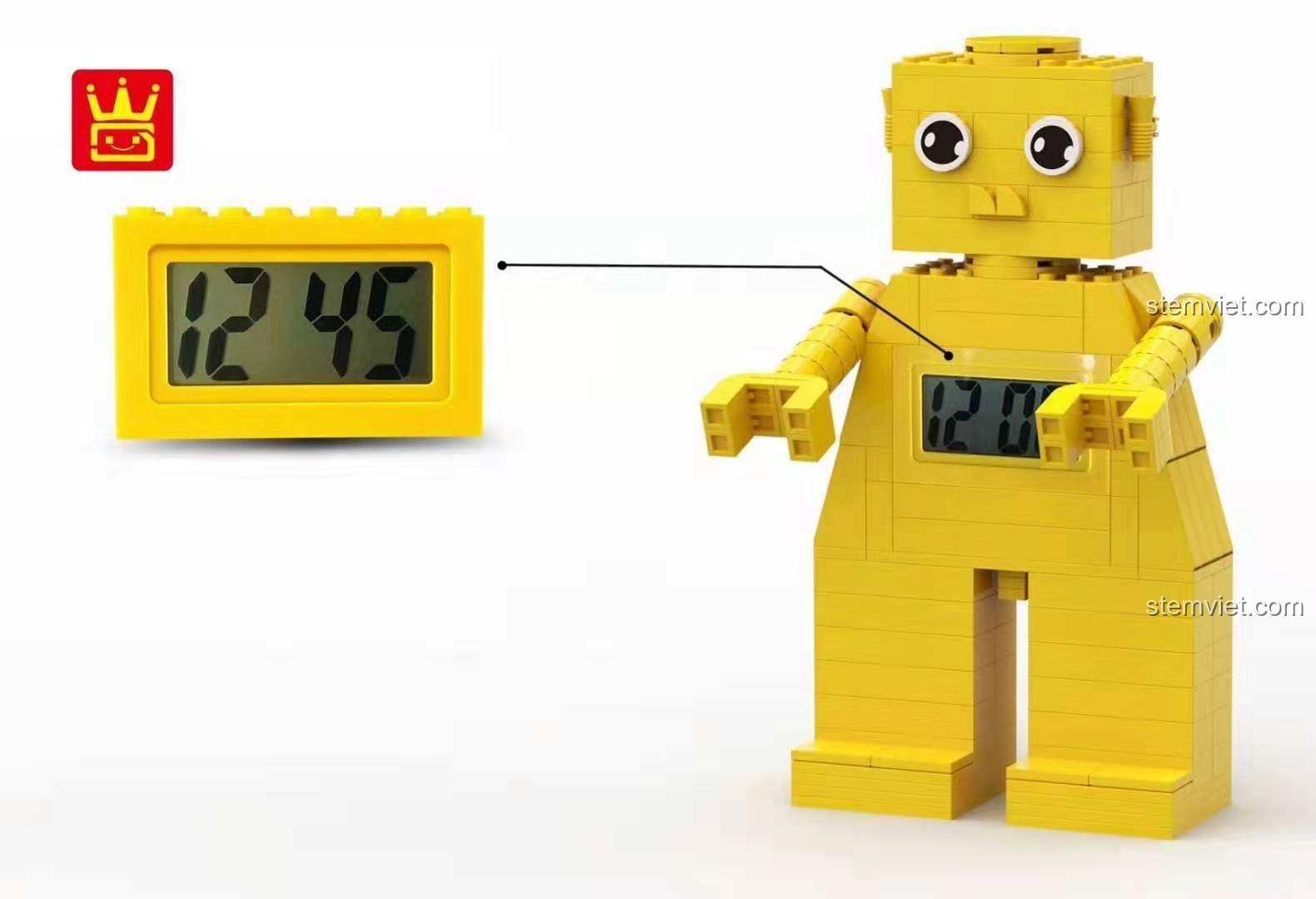 Điểm đặc biệt của bộ sản phẩm WANGE 094-2 chính là chức năng điện tử tích hợp. Chiếc đồng hồ báo thức nhỏ gọn có màn hình hiển thị rõ ràng giờ, phút, giây, và đặc biệt là có chức năng báo thức, giúp bé tập làm quen với việc quản lý thời gian. Bé có thể tự do tháo lắp, sáng tạo ra những mô hình mới theo ý tưởng của riêng mình, không giới hạn ở 3 kiểu mẫu có sẵn. Điều này không chỉ giúp bé giải trí mà còn kích thích khả năng tư duy sáng tạo, giải quyết vấn đề và phát triển trí não toàn diện.
