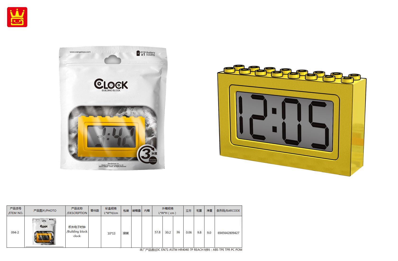 Bộ sản phẩm WANGE 094-2 tích hợp chức năng đồng hồ điện tử với màn hình hiển thị giờ, phút, giây, có đèn nền và chức năng báo thức, mang đến trải nghiệm thực tế và hữu ích cho bé.