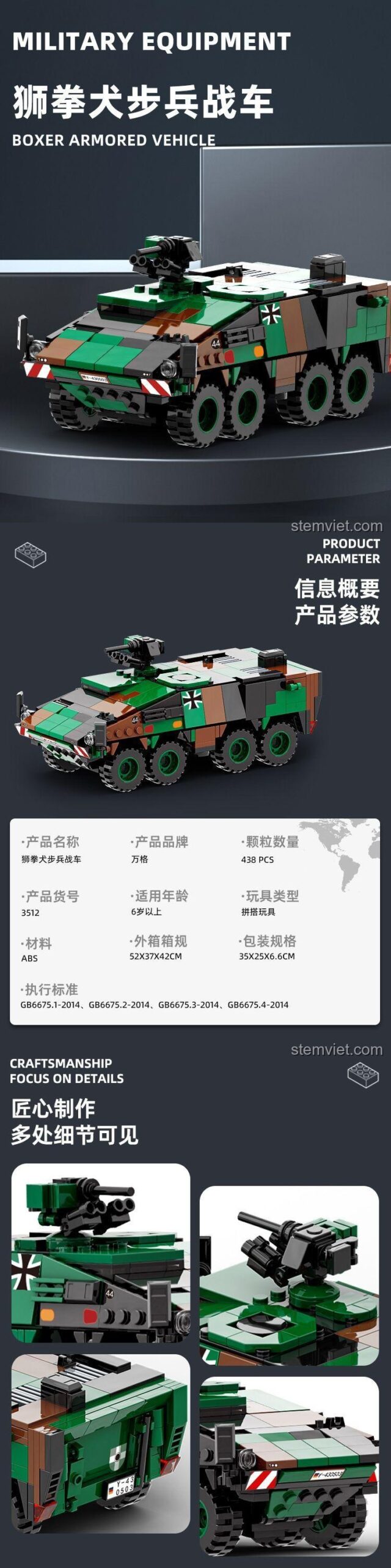 WANGE 3512: Bộ lắp ráp Xe Chiến Đấu Bộ Binh Boxer (438 mảnh ghép) – Pháo Đài Di Động