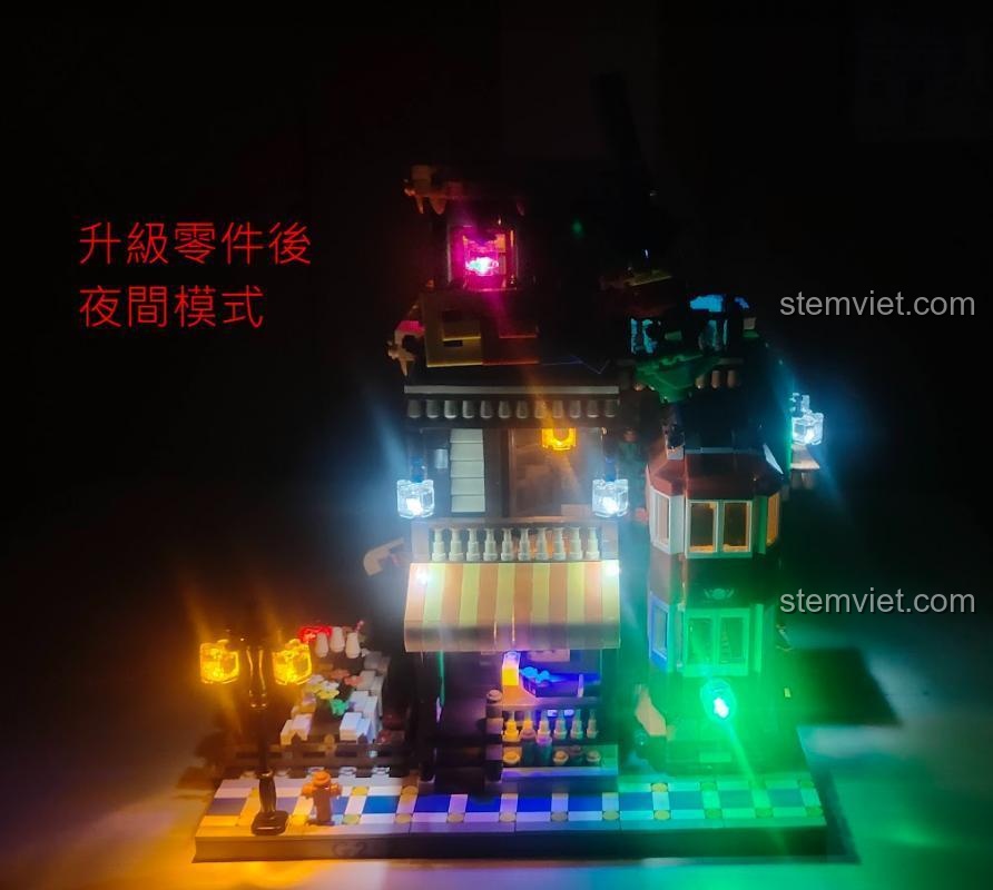 Bộ lắp ghép Quán nướng BBQ WANGE không chỉ đẹp về ngoại hình mà còn ẩn chứa nhiều tính năng thú vị. Mô hình được thiết kế theo dạng module, cho phép người chơi dễ dàng tách rời các tầng để khám phá không gian bên trong hoặc tự do sáng tạo, sắp xếp lại theo ý thích. Mặc dù bộ sản phẩm gốc tập trung vào vẻ đẹp ngoại thất, không gian bên trong vẫn đủ rộng rãi để những nhà MOC tài năng có thể tự tay thiết kế và bổ sung nội thất, biến nó thành một nhà hàng BBQ đầy đủ tiện nghi. Ngoài ra, khu vực sân vườn nhỏ phía trước với bàn ghế, hàng rào và cây cỏ có thể được sắp xếp linh hoạt, tạo ra nhiều bối cảnh khác nhau cho những câu chuyện của bé. Từ cột đèn đường cổ điển, vòi cứu hỏa, cho đến mái hiên sọc vàng cam, mọi chi tiết nhỏ đều góp phần tạo nên một sa bàn đường phố sống động và chân thực.