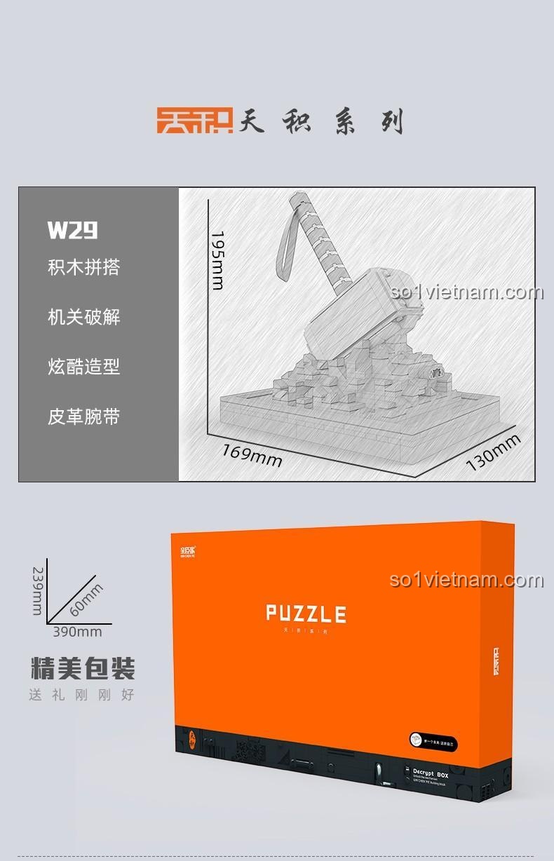 Chào mừng bạn đến với thế giới của Thần Sấm Thor! Bộ lắp ráp Hộp Giải Mã Cơ Chế Thần Sấm Thế Hệ 6 W29 từ Wanwu không chỉ là một mô hình tái hiện chân thực cây búa Mjolnir huyền thoại, mà còn là một bài kiểm tra trí tuệ đầy thử thách. Với thiết kế độc đáo và cơ chế khóa bí mật, sản phẩm này hứa hẹn mang đến những giờ phút giải trí sáng tạo và bổ ích cho mọi người chơi.