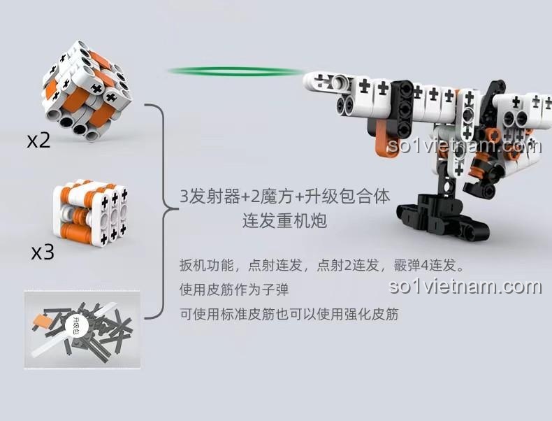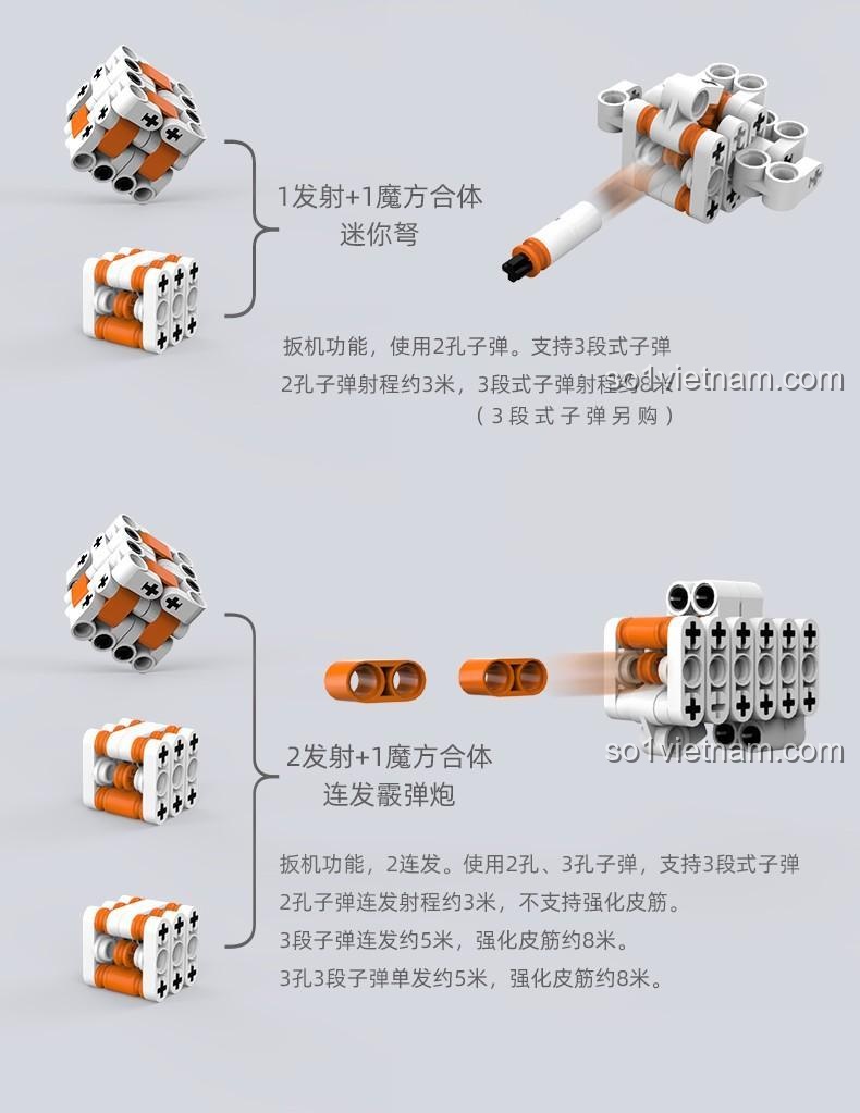 • Chế độ Lắp Ráp Kết Hợp: Sử dụng nhiều bộ Infinite Cube để tạo ra các mô hình lớn hơn, phức tạp hơn như súng máy, xe tăng, robot chiến đấu…