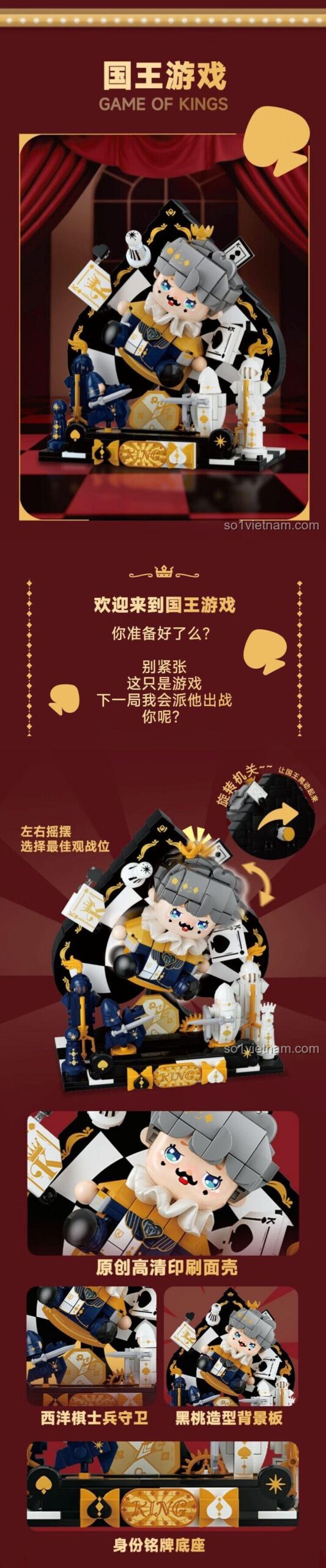 Điểm nhấn chính là thiết kế độc đáo lấy cảm hứng từ thế giới bài Poker, cùng với mô hình chú hề sống động và các chi tiết trang trí lễ hội, mang đến một trải nghiệm xây dựng và trưng bày đầy ấn tượng.