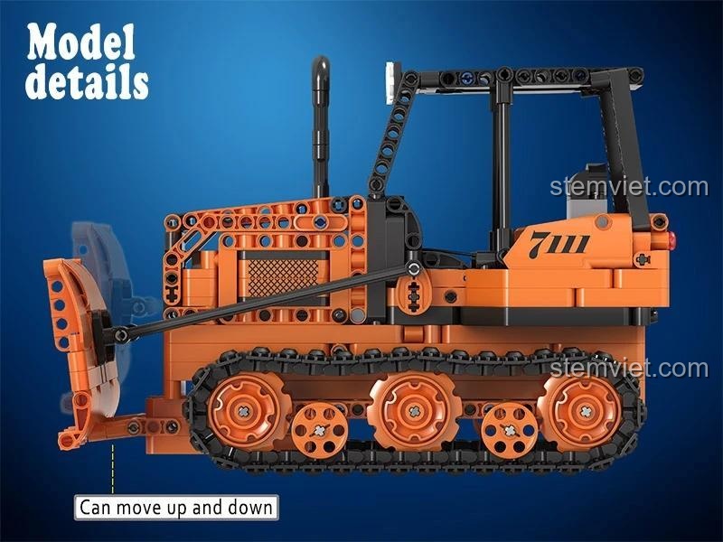 Mô hình này không chỉ đẹp mắt mà còn thể hiện sự tinh xảo trong từng khối lắp ghép. Các khớp nối linh hoạt, các chi tiết kỹ thuật được mô phỏng chính xác, cho phép bé hình dung rõ ràng về cấu trúc và cách vận hành của một chiếc xe ủi đất thực thụ. Cabin lái được thiết kế mở, tạo không gian cho trí tưởng tượng của bé bay xa, hóa thân thành người điều khiển tài ba. Đây chắc chắn là một món đồ chơi xây dựng Xe Ủi Đất Công Trình không thể thiếu trong bộ sưu tập của bất kỳ bé trai nào đam mê xe cộ và công trình.