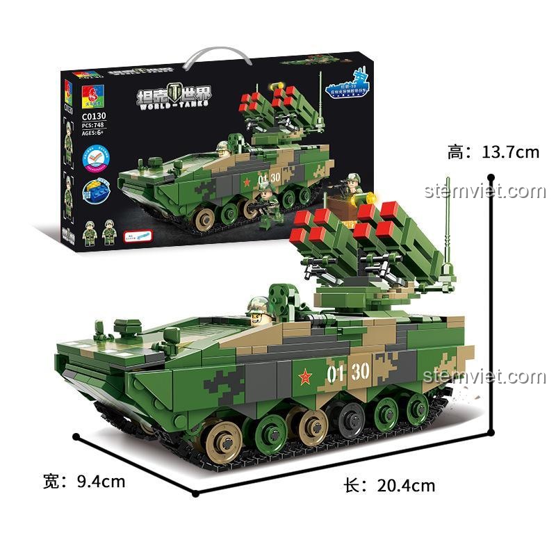 Chào mừng các bậc phụ huynh và đặc biệt là các bé trai 6 tuổi yêu thích thế giới quân sự! Hôm nay, chúng ta sẽ cùng khám phá một tuyệt phẩm đồ chơi lắp ráp: Bộ lắp ráp WOMA C0130 Xe Tăng Thế Giới: Xe Chiến Đấu Bánh Xích Tên Lửa Chống Tăng Hồng Tiễn-10. Đây không chỉ là một món đồ chơi thông thường mà còn là cánh cửa mở ra thế giới lịch sử và công nghệ quân sự đầy hấp dẫn.