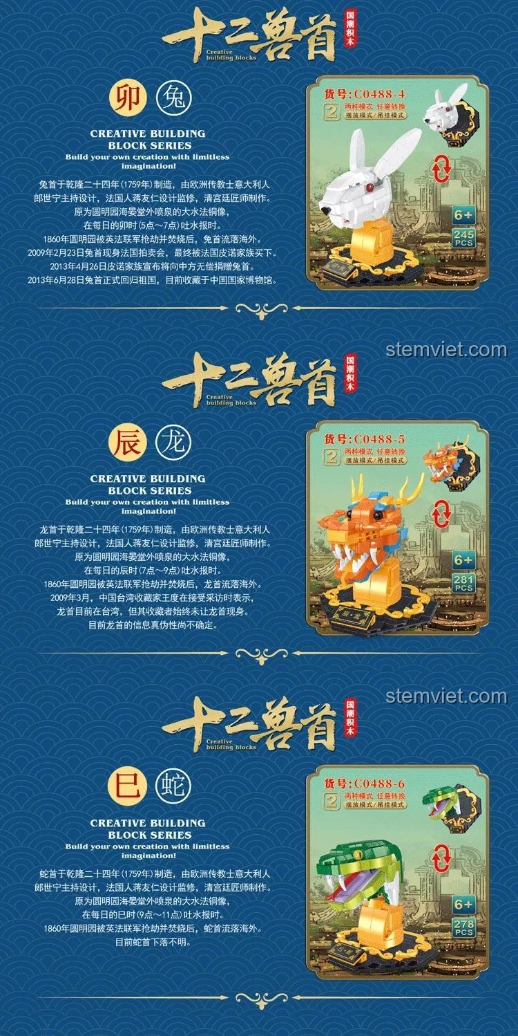Bộ lắp ghép Mô hình Rắn WOMA C0488-6 không chỉ là đồ chơi mà còn là cầu nối đưa bé đến với di sản văn hóa phong phú của Trung Quốc. Bé sẽ được tìm hiểu về câu chuyện lịch sử của Thập Nhị Thú Cung, ý nghĩa của biểu tượng con rắn trong văn hóa Á Đông, và giá trị của những di vật văn hóa quý báu.