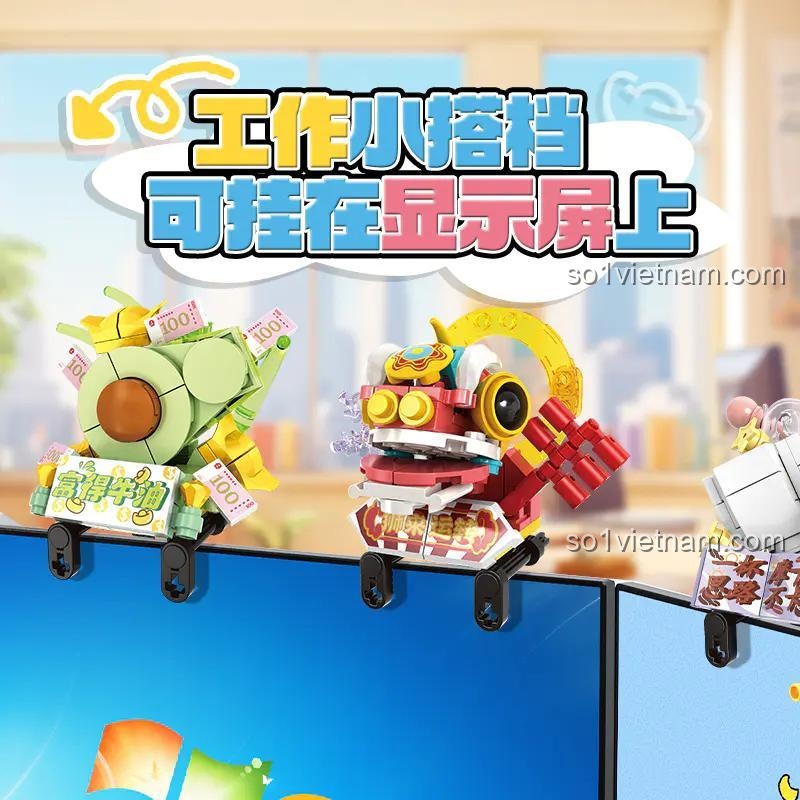 Công năng chính của bộ lắp ghép Đồ trang trí bàn làm việc sáng tạo này là một vật phẩm trang trí độc đáo. Chúng không chỉ làm đẹp cho màn hình máy tính mà còn có thể được đặt trên bàn làm việc, kệ sách, hay bất cứ đâu bạn muốn tạo điểm nhấn. Nhưng giá trị của Woma C1024 không chỉ dừng lại ở đó. Quá trình tự tay lắp ráp từng mô hình nhỏ là một liệu pháp thư giãn tinh thần hiệu quả. Việc tập trung vào từng mảnh ghép giúp bạn tạm thời quên đi những căng thẳng, áp lực công việc, giống như một bài tập thiền định ngắn. Hơn nữa, những thông điệp hài hước trên mỗi mô hình còn là một nguồn động viên tinh thần, một lời nhắc nhở vui vẻ để bạn mỉm cười mỗi khi nhìn vào. Chúng là những người bạn đồng hành thầm lặng, giúp không khí làm việc bớt căng thẳng và trở nên vui vẻ hơn. Bộ sản phẩm cũng là một công cụ tuyệt vời để bắt đầu câu chuyện với đồng nghiệp, kết nối mọi người lại với nhau qua những tiếng cười sảng khoái. Với kiểu chi tiết tương thích LEGO®, bạn còn có thể thỏa sức sáng tạo, kết hợp chúng với các bộ lắp ghép khác để tạo ra những tác phẩm của riêng mình.