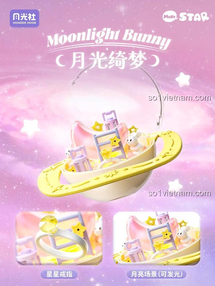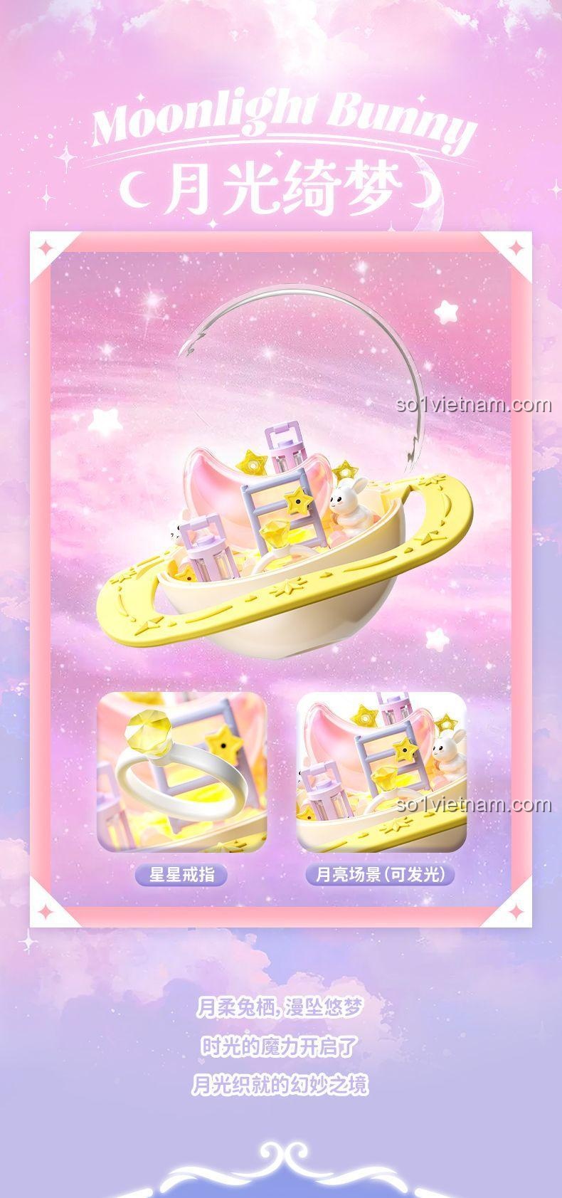 - Giấc Mơ Thỏ Ánh Trăng (Moonlight Bunny): Tông màu vàng và hồng phấn, với chú thỏ trắng đáng yêu bên cạnh chiếc thang sao, đặc biệt có thể phát sáng, tạo nên một khung cảnh đêm trăng huyền ảo.