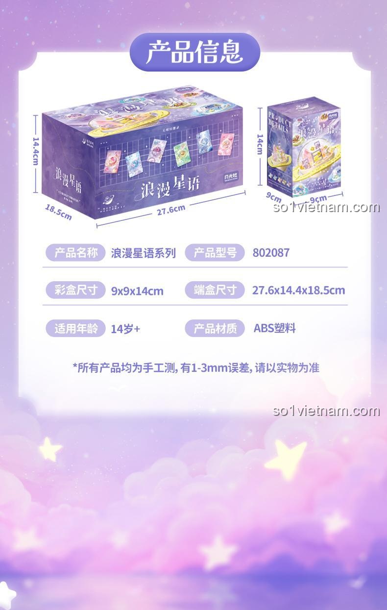 Bạn có bao giờ mơ ước được nắm giữ cả một vũ trụ lung linh trong lòng bàn tay? Với bộ sưu tập đồ chơi mô hình Wonder Moon 802087 Starlight Whispers, giấc mơ ấy sẽ trở thành hiện thực. Đây không chỉ là một bộ đồ chơi lắp ghép, mà là một cánh cổng dẫn lối các bạn gái 14 tuổi vào một thế giới của những lời thì thầm từ các vì sao, nơi mỗi mảnh ghép là một nốt nhạc trong bản giao hưởng của trí tưởng tượng. Mỗi hộp là một hành tinh bí ẩn, một câu chuyện đang chờ được kể. Lấy cảm hứng từ vẻ đẹp huyền ảo của dải ngân hà, Wonder Moon đã tạo ra một bộ sưu tập độc đáo, kết hợp giữa niềm vui lắp ráp, sự hồi hộp của việc mở hộp bí ẩn (blind box) và công năng sử dụng thực tế. Hãy cùng con gái bạn bắt đầu cuộc hành trình khám phá 6 thế giới thu nhỏ, nơi sự sáng tạo và những giấc mơ ngọt ngào giao thoa, tạo nên những khoảnh khắc diệu kỳ và đáng nhớ.
