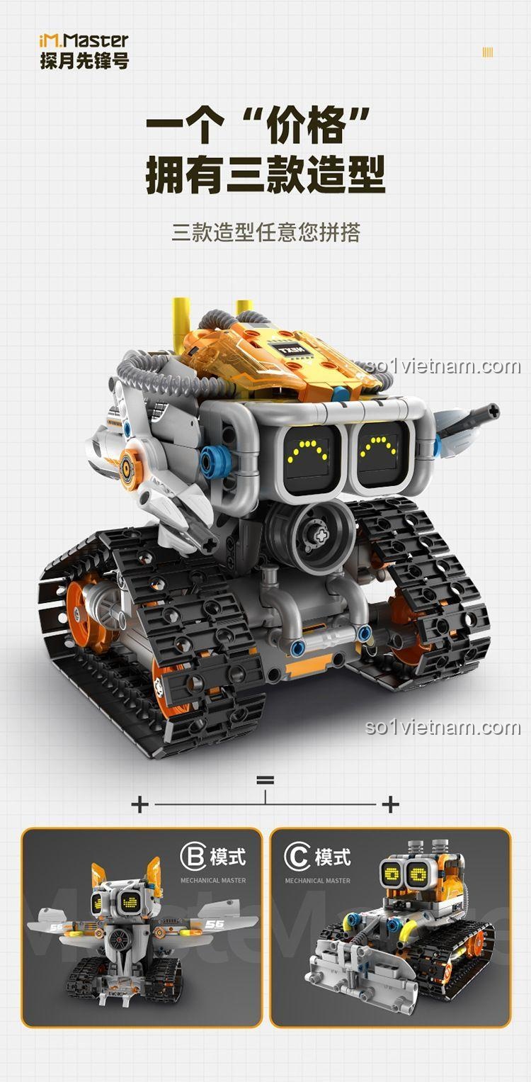Điểm nhấn đặc biệt của Xe Tăng Thám Hiểm Mặt Trăng 8056 chính là khả năng lập trình. Bé có thể dễ dàng thiết lập chuỗi lệnh để robot thực hiện các nhiệm vụ phức tạp, rèn luyện tư duy logic và kỹ năng giải quyết vấn đề. Màn hình LED hiển thị đa dạng các biểu cảm khuôn mặt, giúp robot trở nên sống động và gần gũi hơn với người chơi.