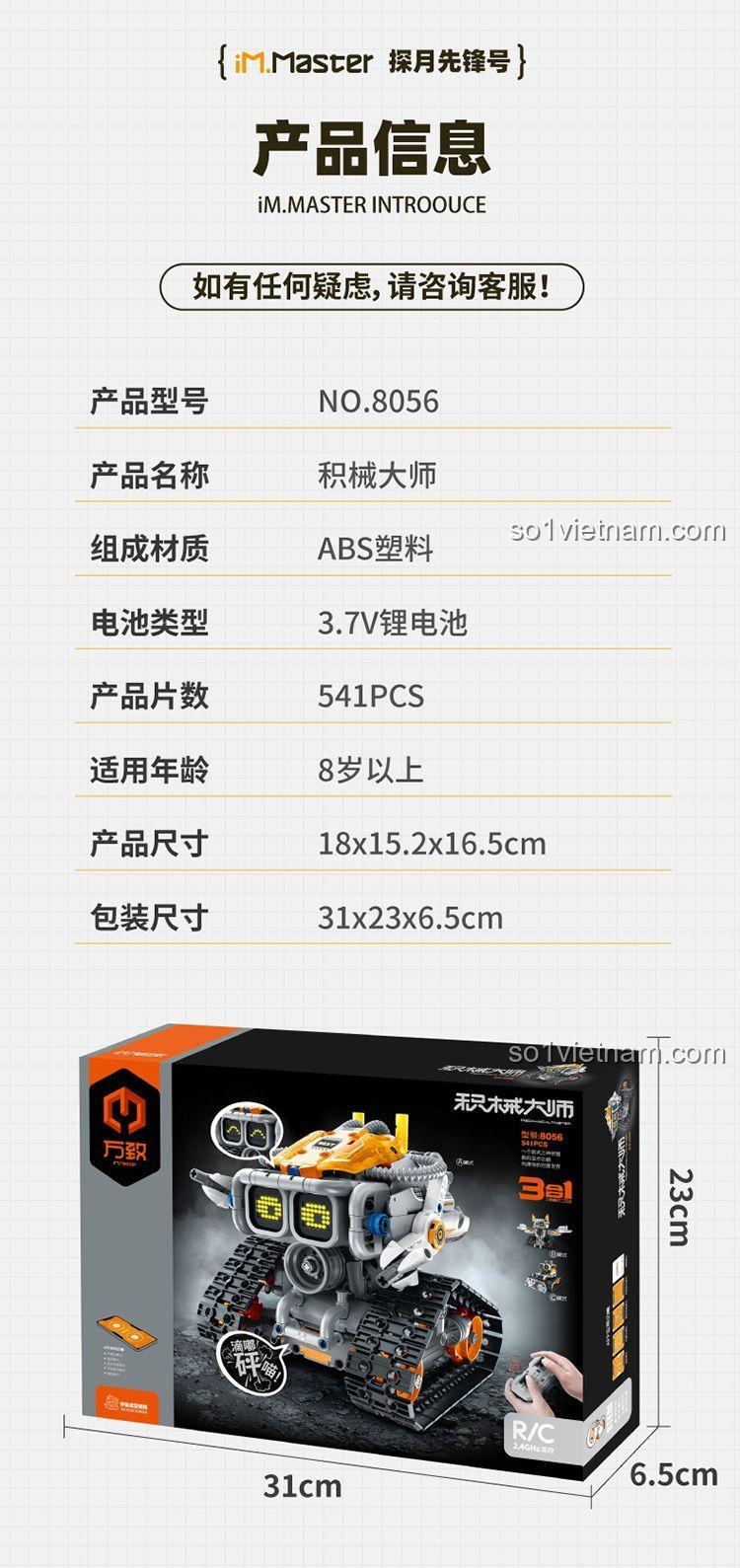 Chào mừng bố và các bé đến với hành trình khám phá không gian bất tận cùng Xe Tăng Thám Hiểm Mặt Trăng 8056 từ thương hiệu 万致IM.Master! Bộ lắp ghép mô hình công nghệ cao này không chỉ là một món đồ chơi, mà còn là cánh cửa mở ra thế giới khoa học, kỹ thuật và lập trình đầy hấp dẫn cho các bạn nhỏ từ 8 tuổi trở lên.