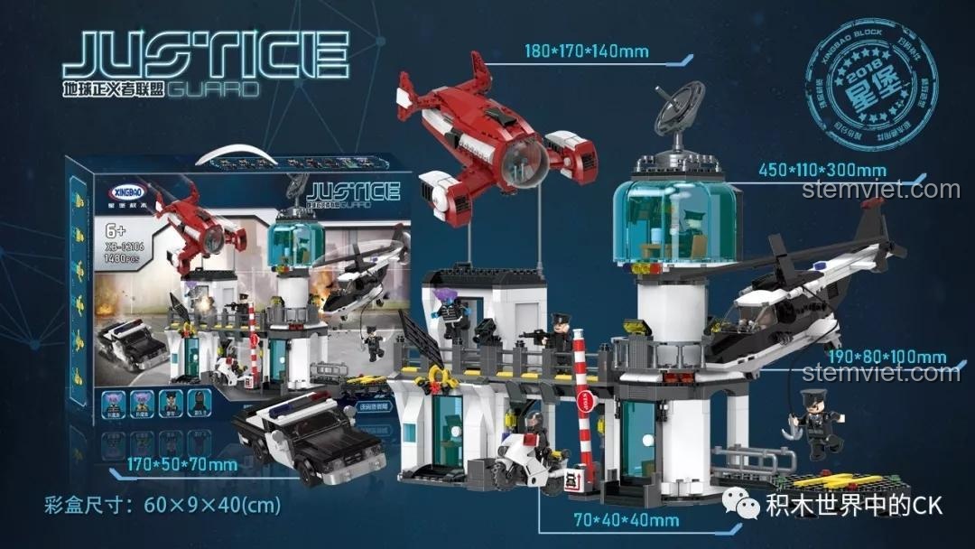 XINGBAO XB-02106 – Bộ Lắp Ráp Trụ Sở Cảnh Sát Công Lý Với 1480 Mảnh, Kèm Phi Thuyền & Trực Thăng Độc Đáo