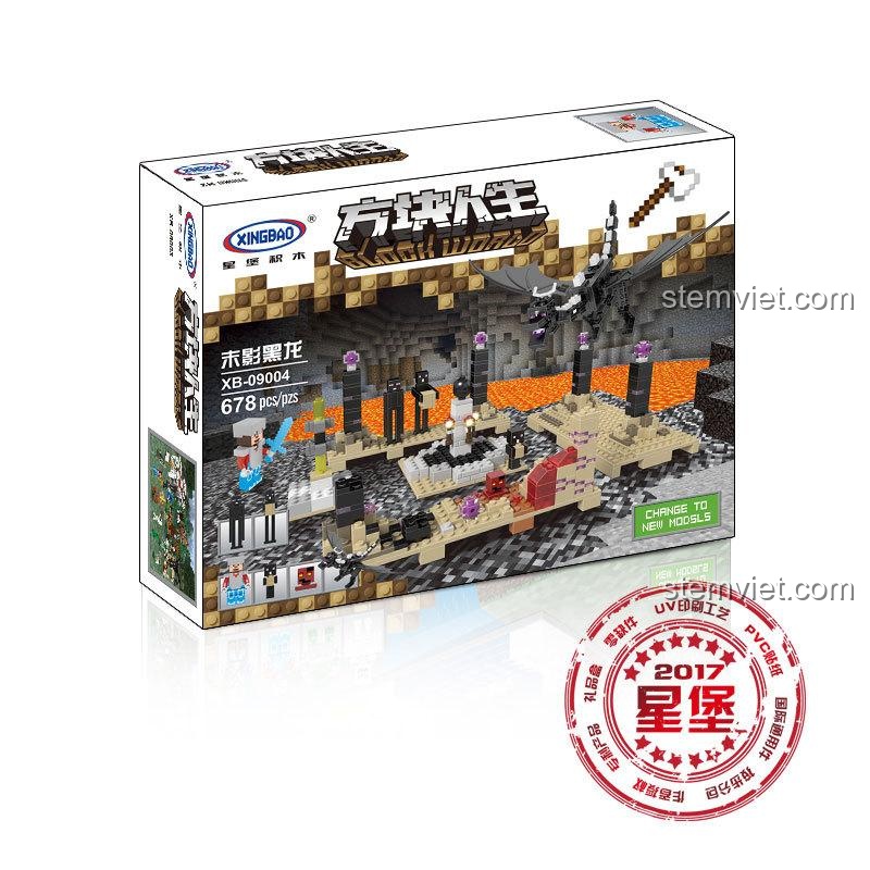 Tái hiện lại trận chiến hoành tráng nhất trong thế giới Minecraft với bộ lắp ráp **Xingbao XB-09004 Rồng Ender**! Với 678 mảnh ghép chất lượng cao, bé sẽ được tự tay xây dựng nên khung cảnh The End kỳ bí, nơi diễn ra cuộc đối đầu nảy lửa giữa nhân vật Steve và con Rồng Ender hùng mạnh. Bộ sản phẩm không chỉ mang đến mô hình Rồng Ender đen tuyền, khớp nối linh hoạt mà còn đi kèm các nhân vật Enderman và Steve, sẵn sàng cho mọi kịch bản phiêu lưu. Đây là một lựa chọn thay thế tiết kiệm cho LEGO®, mang lại trải nghiệm lắp ráp thông minh, sáng tạo và đầy thử thách. Một món quà hoàn hảo, giá cực tốt dành cho các fan nhí của Minecraft, giúp bé phát triển tư duy logic và trí tưởng tượng phong phú.