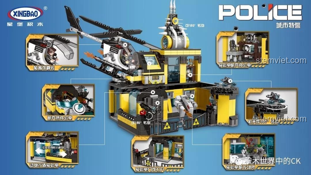 XINGBAO XB-10006 – Bộ Lắp Ráp Cảnh Sát Đột Kích Viện Nghiên Cứu Với Kèm Xe Cảnh Sát & Trực Thăng Độc Đáo