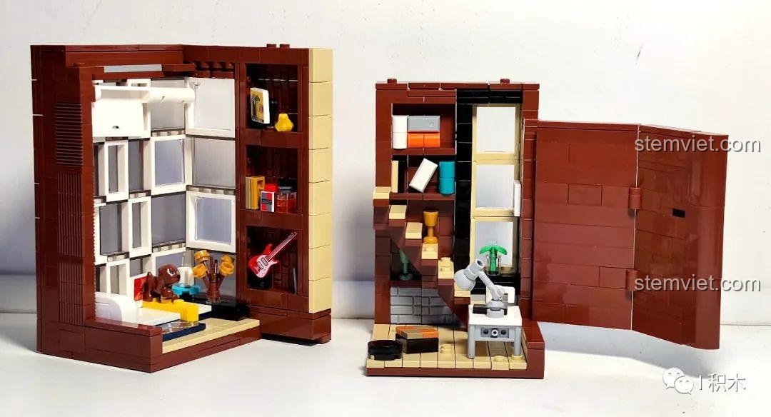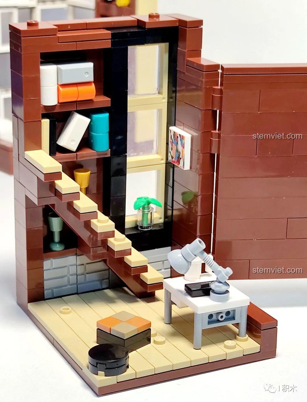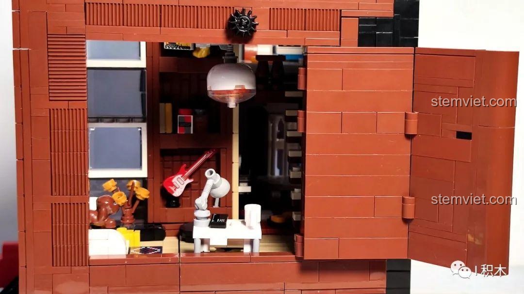 Bên trong là cả một thế giới nội thất siêu chi tiết! Bạn sẽ tìm thấy phòng khách, phòng ngủ, phòng tắm, phòng làm việc, gara, và đặc biệt là một phòng bí mật dành cho fan Star Wars. Tất cả đều được trang bị đầy đủ đồ đạc và vật dụng trang trí tinh xảo.