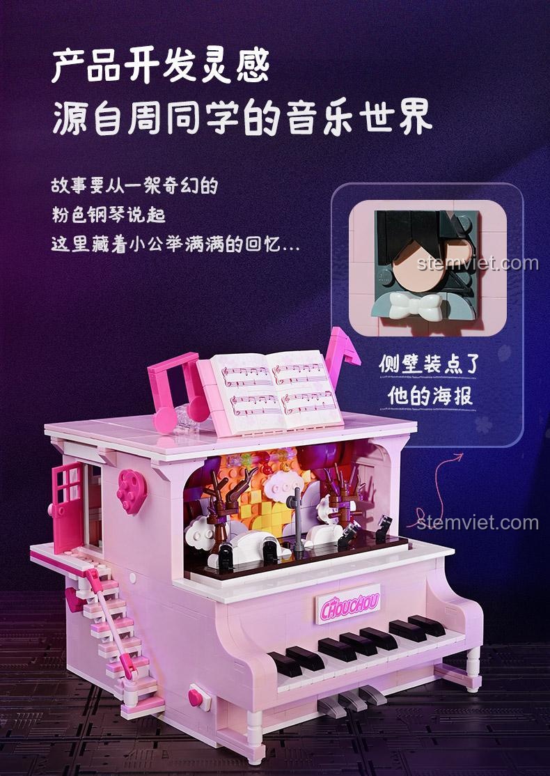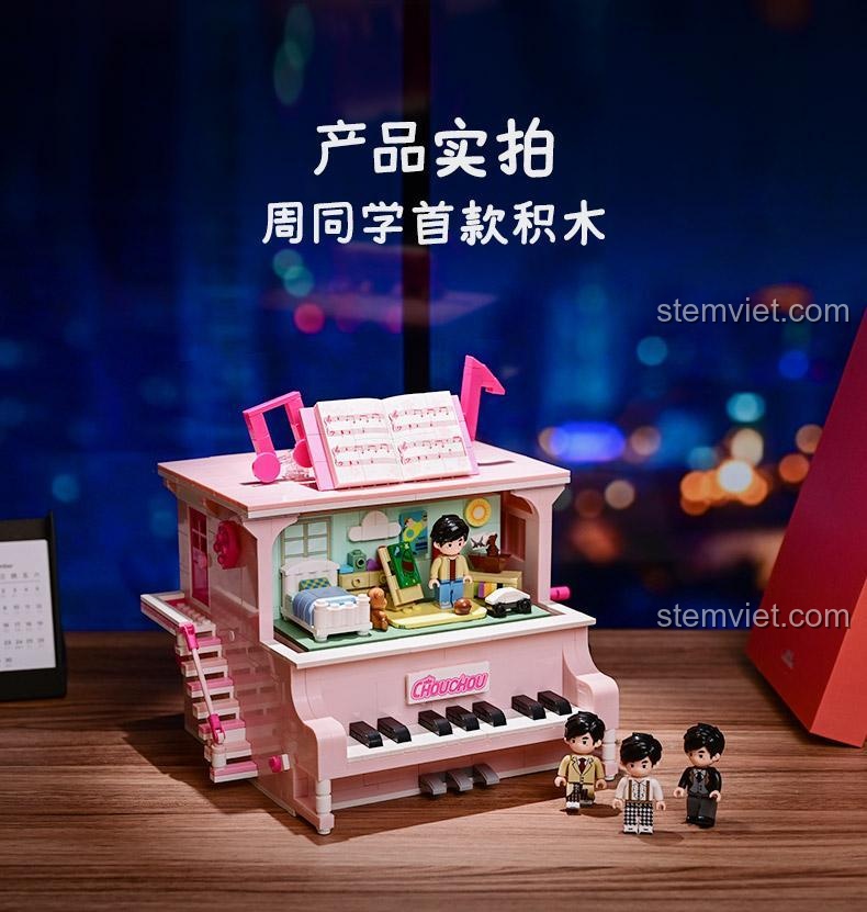 Sản phẩm này được lấy cảm hứng từ ‘Chou Chou’ (周同学), hình ảnh đại diện 2D chính thức của siêu sao nhạc pop Đài Loan Châu Kiệt Luân. Mỗi chi tiết, mỗi góc cạnh của mô hình đều là một sự tôn vinh đối với sự nghiệp âm nhạc đồ sộ của anh, một cách để kể lại những câu chuyện đã làm lay động hàng triệu trái tim. Hãy cùng con gái bạn khám phá và xây dựng nên thế giới âm nhạc đầy màu sắc này, một hoạt động gắn kết gia đình đầy ý nghĩa.