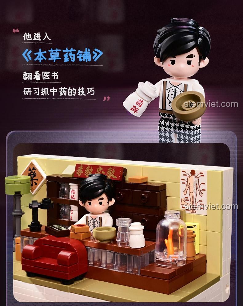 • Tiệm thuốc Bản Thảo Cương Mục (本草纲目): Không gian đậm chất phương Đông với những tủ thuốc, những vị thuốc được in sắc nét, gợi nhớ về một bản hit đầy sáng tạo.