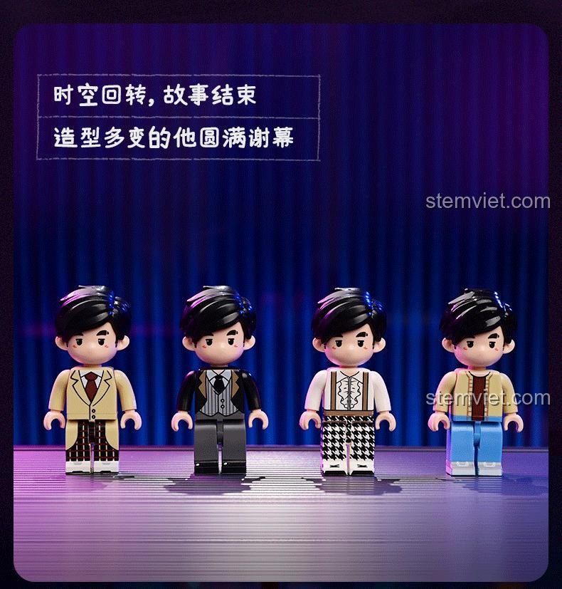 1. Tour diễn xuyên không: Sử dụng 4 minifigures và 4 bối cảnh để tạo ra một tour diễn vòng quanh thế giới âm nhạc của Châu Kiệt Luân.