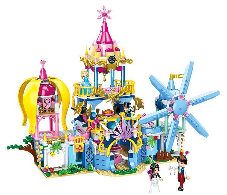 Tòa lâu đài được thiết kế với gam màu chủ đạo là trắng, hồng, xanh dương và vàng, tạo nên một không gian huyền ảo và lung linh. Các chi tiết như tháp nhọn cao vút, cửa sổ lấp lánh, ban công duyên dáng và đặc biệt là cối xay gió khổng lồ màu xanh dương sẽ khiến bé thích thú. Bộ sản phẩm còn đi kèm 3 nhân vật minifigure đáng yêu: một nàng công chúa xinh đẹp trong bộ váy xanh, một chàng hoàng tử lịch lãm và một cô gái nhỏ với mái tóc đen. Bé có thể hóa thân thành những nhân vật này, tạo ra những câu chuyện phiêu lưu kỳ thú.