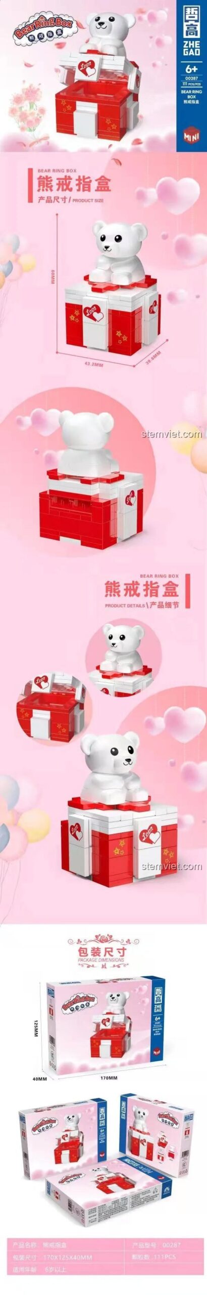 ZHEGAO 00287 Bộ Lắp Ghép Hộp Nhẫn Hình Gấu – Món Quà Tình Yêu Độc Đáo