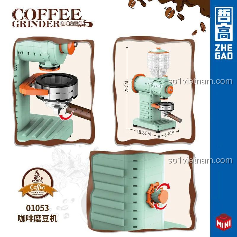 Điểm đặc biệt của ZHEGAO 01053 là thiết kế mô phỏng máy xay cà phê cổ điển với độ chi tiết cao, cùng với khả năng xoay tay cầm, mang lại trải nghiệm chân thực và thú vị. Đây cũng là một lựa chọn tuyệt vời để trang trí không gian sống.