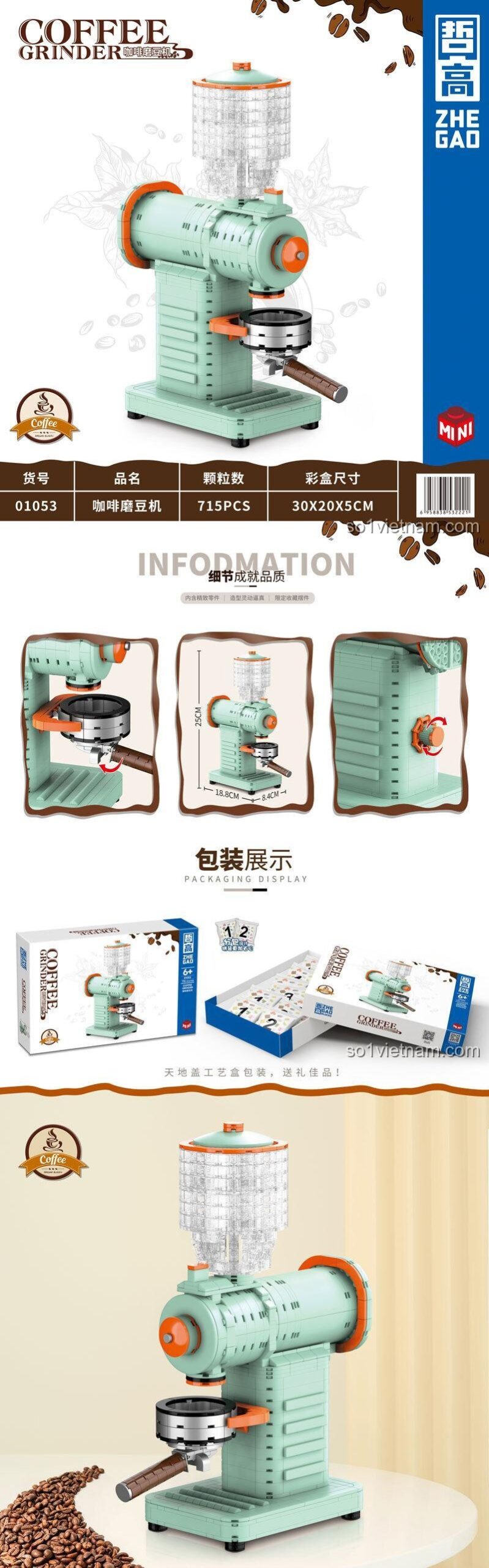 Chào mừng bạn đến với thế giới của những hạt cà phê thơm lừng và nghệ thuật pha chế tinh tế! Bộ lắp ghép máy xay cà phê ZHEGAO 01053 không chỉ là một món đồ chơi, mà còn là một tác phẩm nghệ thuật thu nhỏ, mang đến trải nghiệm độc đáo cho cả trẻ em và người lớn yêu thích sự hoài cổ và đam mê cà phê.