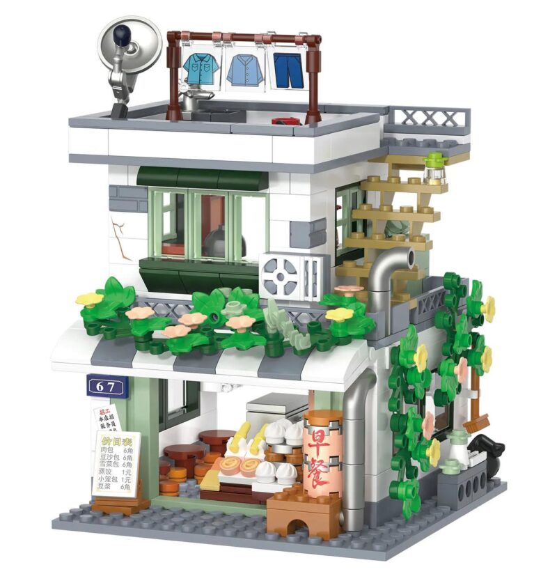 Với 460 mảnh ghép chi tiết, ZHEGAO 612039 “Tiệm Ăn Sáng “Ký Ức Xưa”” mang đến một mô hình kiến trúc độc đáo, tái hiện sống động hình ảnh một tiệm ăn đường phố đậm chất retro. Từng chi tiết nhỏ như biển hiệu, cửa sổ, bàn ghế, quầy hàng, cho đến những món ăn được bày biện đều được thiết kế tỉ mỉ, chân thực, tạo nên một bức tranh thu nhỏ đầy nghệ thuật.