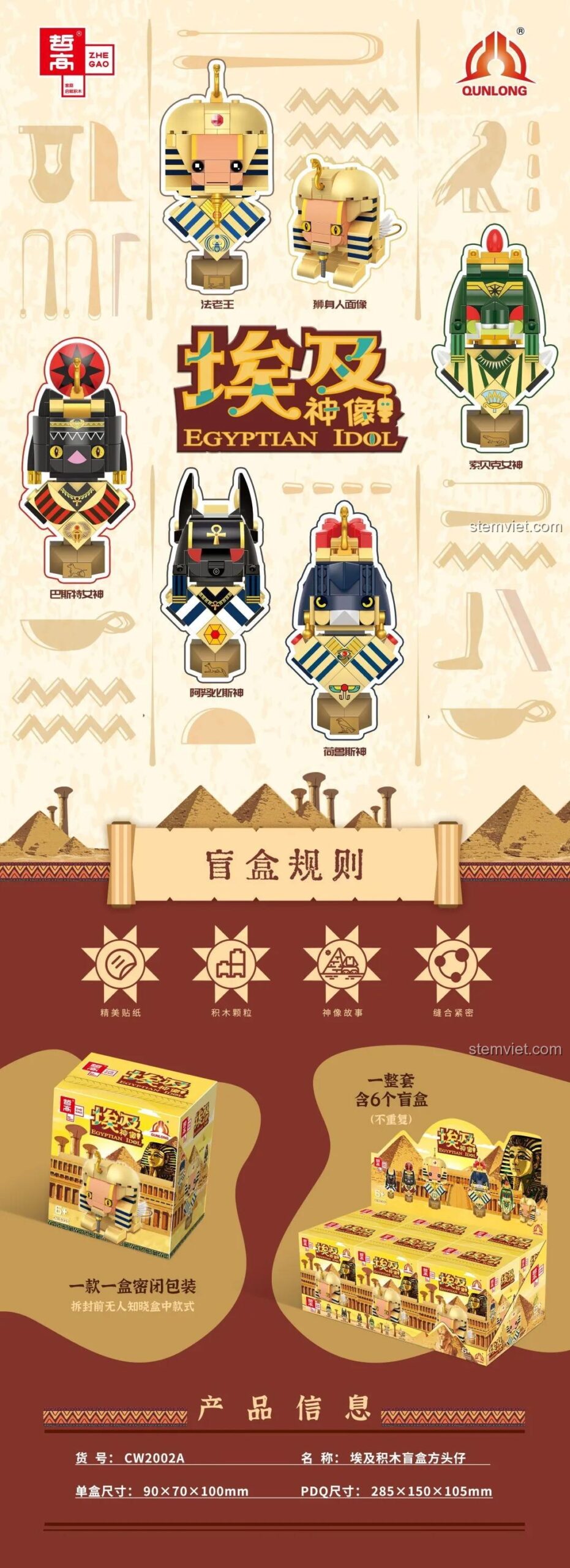 Điểm nhấn nổi bật của bộ lắp ghép Tượng Thần Ai Cập Zhegao CW2002A chính là yếu tố hộp mù đầy thú vị. Mỗi hộp nhỏ chứa một trong 6 mô hình thần thoại Ai Cập, mang đến sự hồi hộp và bất ngờ cho bé mỗi khi mở hộp. Điều này không chỉ tăng thêm niềm vui khi sưu tầm mà còn khuyến khích bé khám phá và trao đổi với bạn bè để hoàn thành bộ sưu tập. Đặc biệt, các mô hình đầu vuông này có khả năng tương thích hoàn hảo với các thân hình vuông phổ biến khác trên thị trường, mở ra không giới hạn khả năng sáng tạo. Bé có thể tự do kết hợp đầu của Pharaoh 002A hay Nhân Sư 2A với các thân hình khác để tạo ra những nhân vật độc đáo của riêng mình. Đây là một tính năng đặc biệt giúp bộ đồ chơi mô hình Nhân Sư này trở nên linh hoạt và hấp dẫn hơn bao giờ hết, vượt xa một bộ xếp hình Nữ Thần Sobek thông thường.