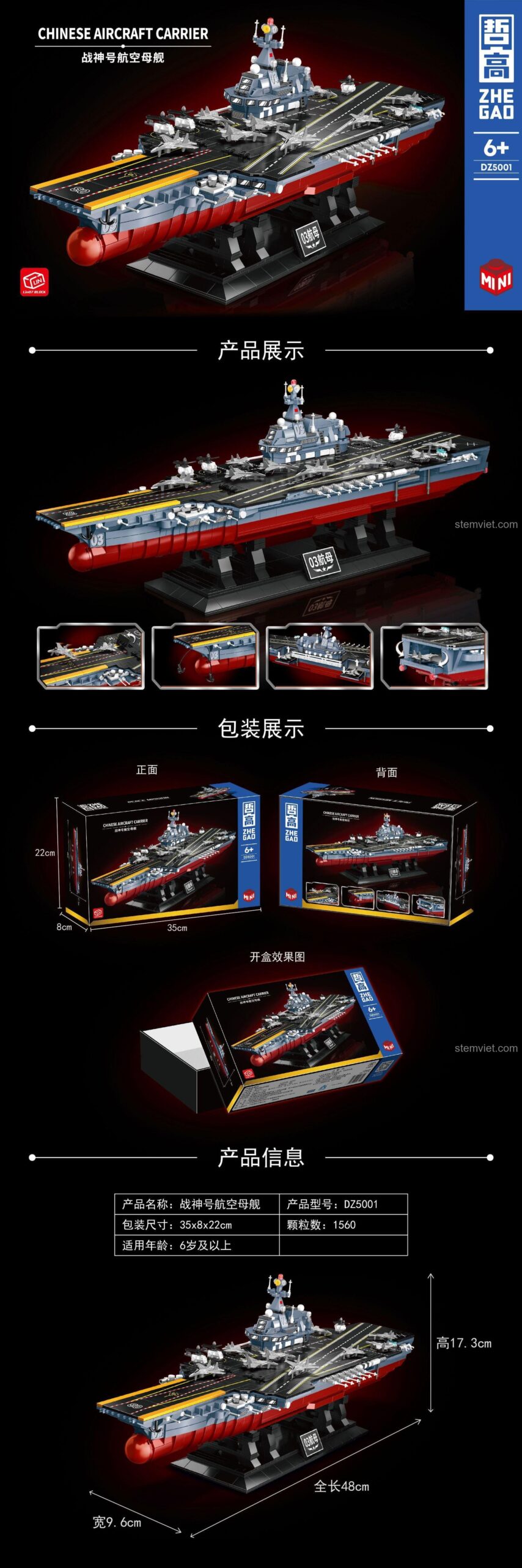 ZHEGAO DZ5001: Tàu Sân Bay Chiến Thần – 1560 Mảnh Ghép