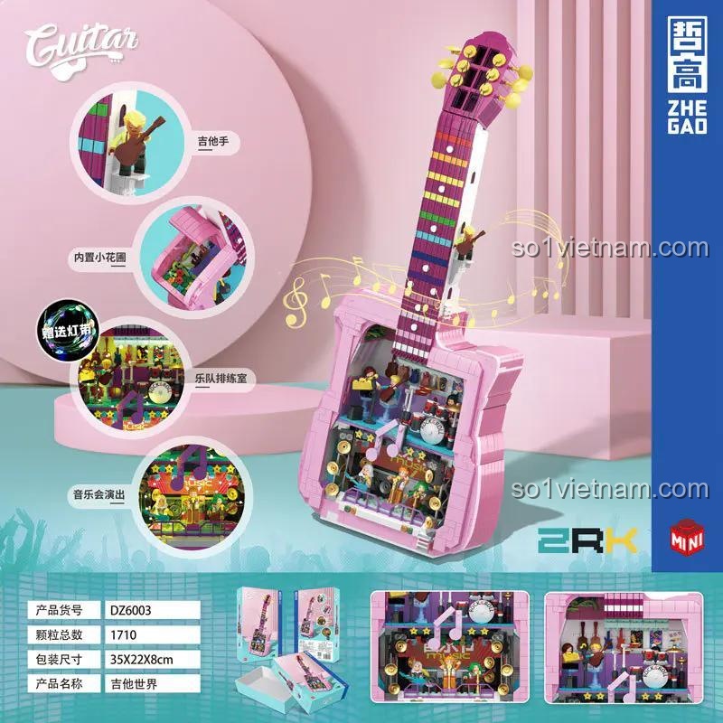 Bộ lắp ghép ZHEGAO DZ6003 Guitar Thế Giới Âm Nhạc bao gồm tổng cộng 1710 mảnh ghép.