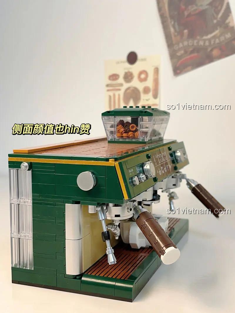 Bộ lắp ráp Máy Pha Cà Phê ZHEGAO DZ6017 nổi bật với thiết kế mô phỏng tỉ mỉ, tái hiện hoàn hảo từng chi tiết của một chiếc máy pha cà phê cao cấp. Từ màu xanh lá chủ đạo kết hợp với các chi tiết màu nâu gỗ ấm áp và vàng kim loại sang trọng, tất cả tạo nên một tổng thể hài hòa, bắt mắt. Các chi tiết như ngăn chứa hạt cà phê trong suốt, khay hứng nước, vòi chiết xuất cà phê, tay cầm, và màn hình hiển thị kỹ thuật số đều được chế tác tinh xảo, mang đến trải nghiệm chân thực nhất. Đi kèm là mô hình tách cà phê nhỏ xinh, hoàn thiện bức tranh về một quầy bar thu nhỏ đầy sống động.