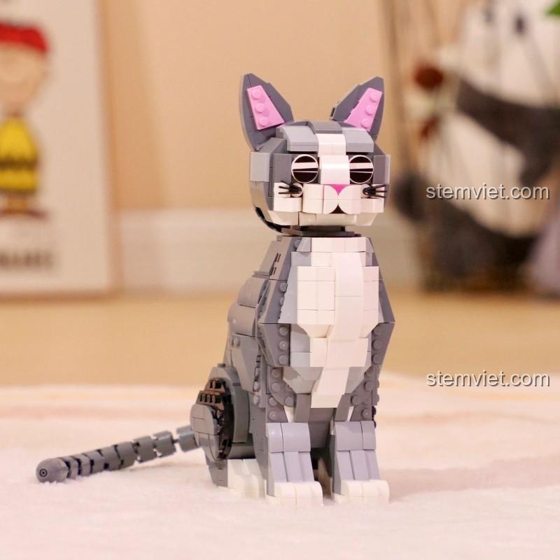 Ngay từ cái nhìn đầu tiên, Mô hình mèo xám DZ6118 đã chinh phục mọi trái tim yêu mèo bởi vẻ ngoài siêu cấp đáng yêu. Với sự kết hợp hài hòa giữa các màu sắc chủ đạo như Xám, Trắng, và Đen, điểm xuyết thêm chút Hồng xinh xắn ở tai và mũi, chú mèo hiện lên sống động như thật. Từng đường cong mềm mại của thân mình, cái đầu tròn xoe với đôi mắt to long lanh, và cả chiếc đuôi dài duyên dáng đều được tái hiện một cách tỉ mỉ qua 805 mảnh ghép mini.