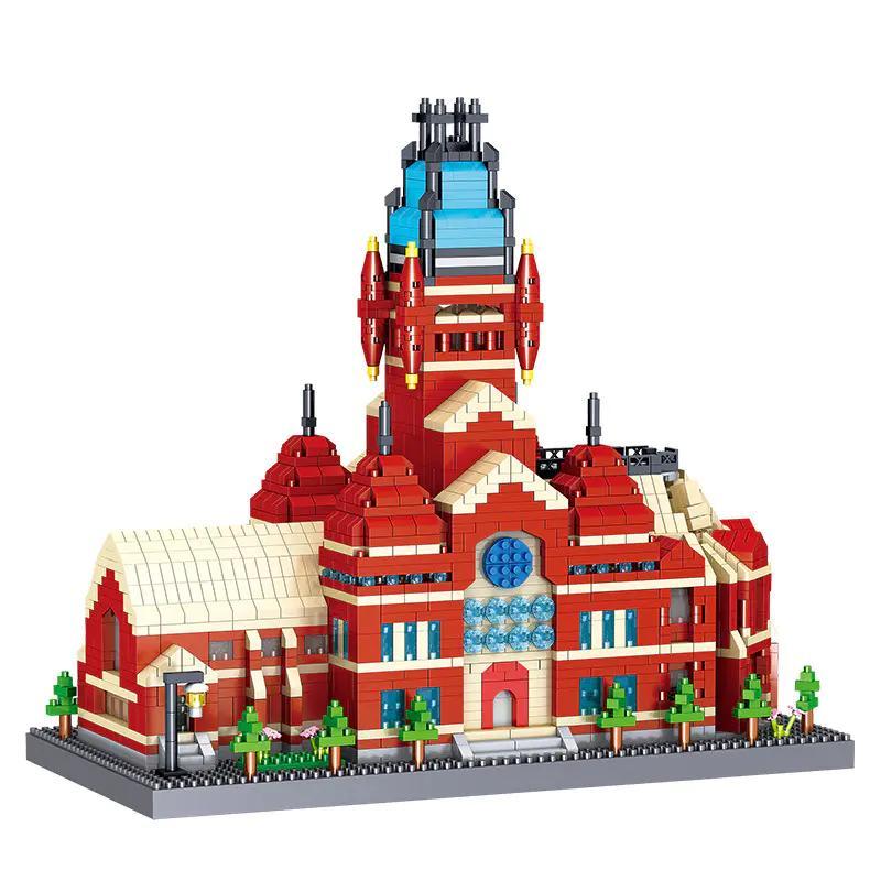 Mô hình kiến trúc này có kích thước ấn tượng 24cm chiều dài, 12cm chiều rộng và 21.5cm chiều cao, được tạo nên từ 3210 mảnh ghép mini block tinh xảo. Các màu sắc chủ đạo như Đỏ gạch, Trắng kem, Xanh dương và Xám được phối hợp hài hòa, làm nổi bật lên phong cách Gothic Victoria đặc trưng của tòa nhà. Từ những mái vòm cong, cửa sổ kính màu, đến tháp chuông cao vút và các chi tiết trang trí phức tạp, mỗi mảnh ghép đều được thiết kế tỉ mỉ để đảm bảo sự chính xác và tính thẩm mỹ cao nhất.