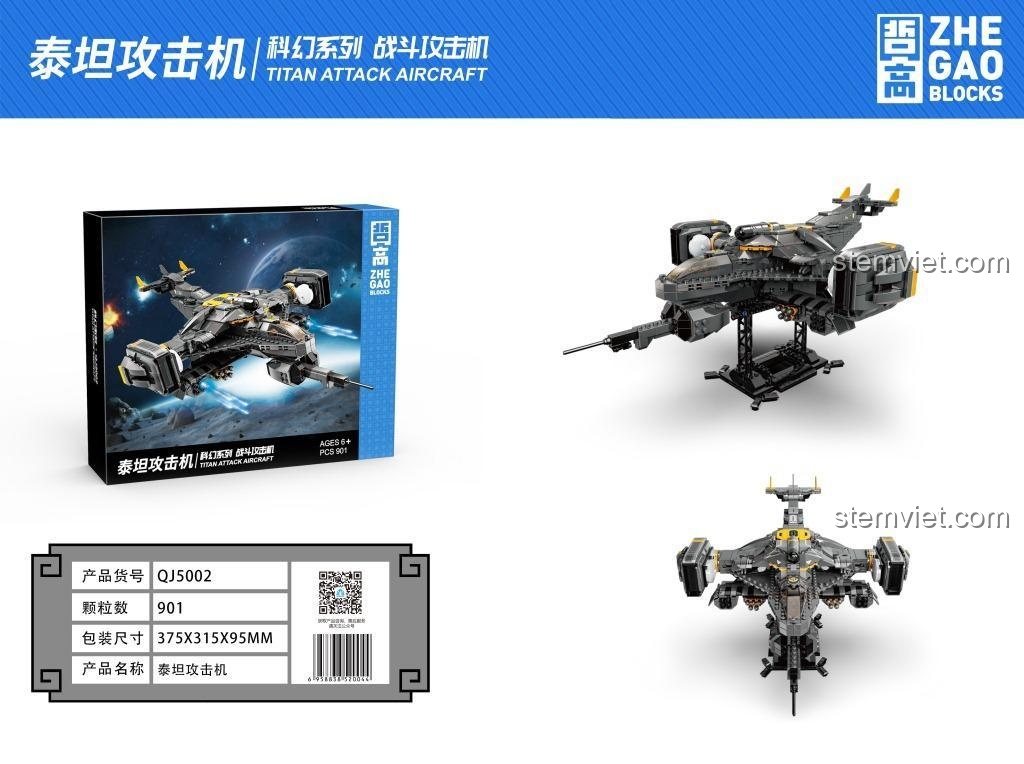 ZHEGAO QJ5002 – Đồ chơi mô hình Máy bay tấn công Titan Với Thiết kế Sci-Fi ấn tượng Độc Đáo