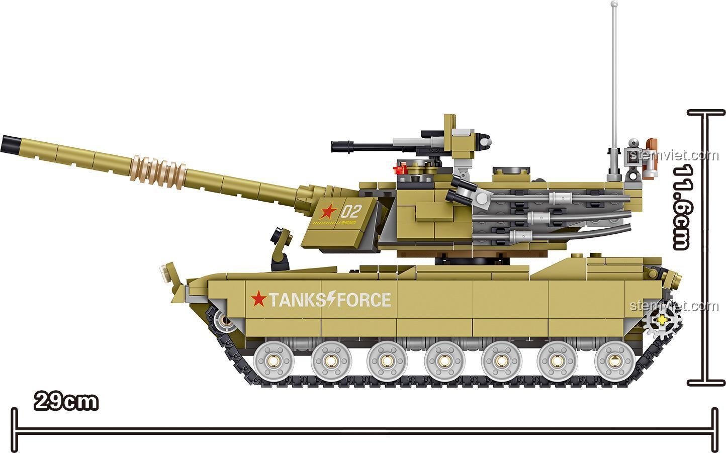 Ngay từ cái nhìn đầu tiên, đồ chơi mô hình ZHEGAO QL0130 đã gây ấn tượng mạnh mẽ bởi thiết kế chân thực và độ chi tiết đáng kinh ngạc. Từng đường nét, từ lớp sơn màu xanh lá quân đội đặc trưng, hệ thống xích xe phức tạp, cho đến các loại vũ khí trang bị trên tháp pháo, tất cả đều được tái hiện một cách tỉ mỉ. Với kích thước ấn tượng dài 29cm và cao 11.6cm sau khi hoàn thành, chiếc xe tăng này thực sự là một mô hình trưng bày hoành tráng. Bộ sản phẩm còn đi kèm 4 minifigures binh lính với trang phục rằn ri và vũ khí đầy đủ, bao gồm lính lái xe, chỉ huy, xạ thủ và một lính bộ binh yểm trợ, cho phép bé dàn dựng những kịch bản tác chiến sống động nhất. Mỗi chi tiết đều được chăm chút để mang lại trải nghiệm lắp ráp và vui chơi chân thực nhất cho các chỉ huy nhí.