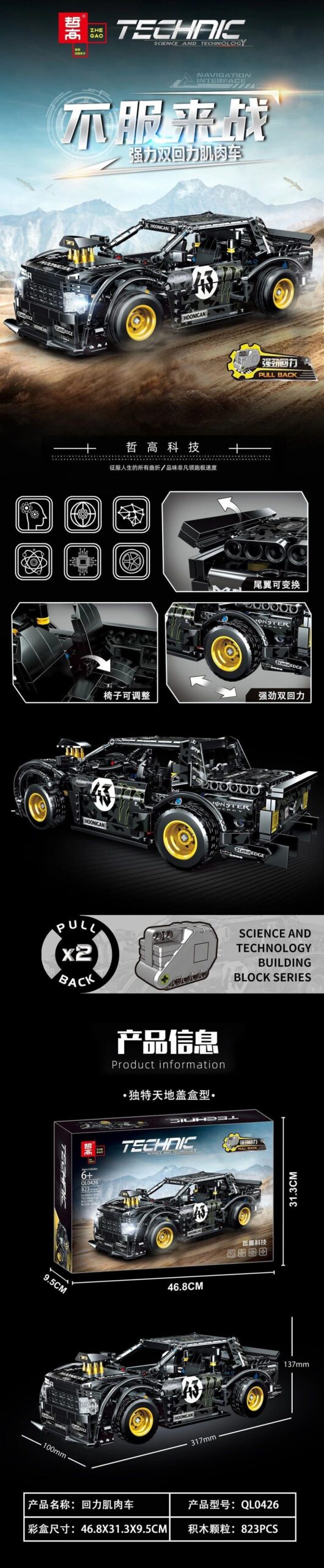 🚀 Sức Mạnh Vượt Trội: Tính Năng Động Cơ Kéo Lùi Kép Của Bộ Lắp Ráp Zhegao QL0426 Xe Ford Mustang Hoonicorn RTR Drift Car