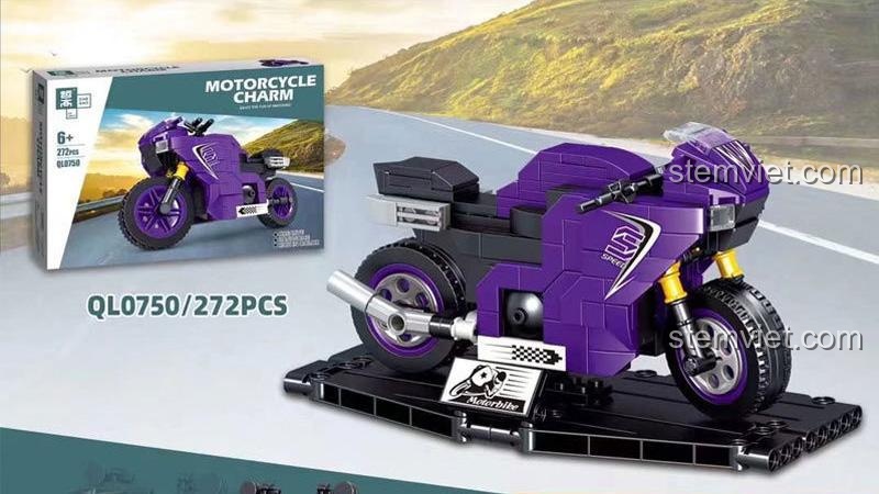 Điểm nhấn của bộ lắp ghép này là thiết kế mô tô thể thao màu tím độc đáo, mang đến trải nghiệm lắp ráp và trưng bày thú vị.
