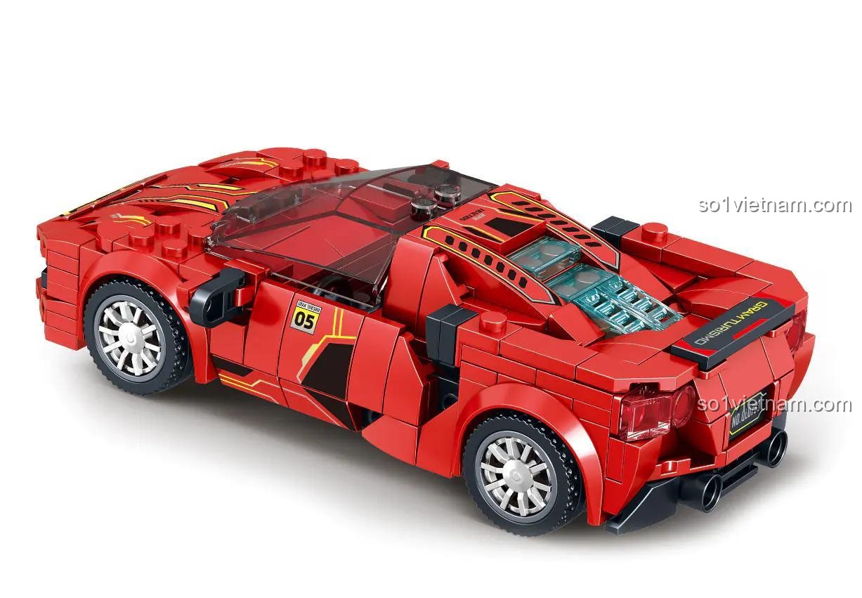 Siêu xe đua DN2000 ZHEGAO QL0753-4 nổi bật với thiết kế vô cùng ấn tượng và chân thực. Màu đỏ rực rỡ kết hợp cùng các chi tiết màu đen và vàng tạo nên một tổng thể hài hòa, mạnh mẽ và đầy cuốn hút. Từng đường nét trên thân xe, từ phần đầu xe hầm hố, kính chắn gió trong suốt, đến cánh gió sau khí động học, tất cả đều được tái hiện một cách tinh xảo, mang đến cảm giác như đang chiêm ngưỡng một kiệt tác nghệ thuật thu nhỏ. Bộ lắp ghép này không chỉ là đồ chơi mà còn là một vật phẩm trang trí độc đáo, tô điểm thêm cho không gian phòng của bé.