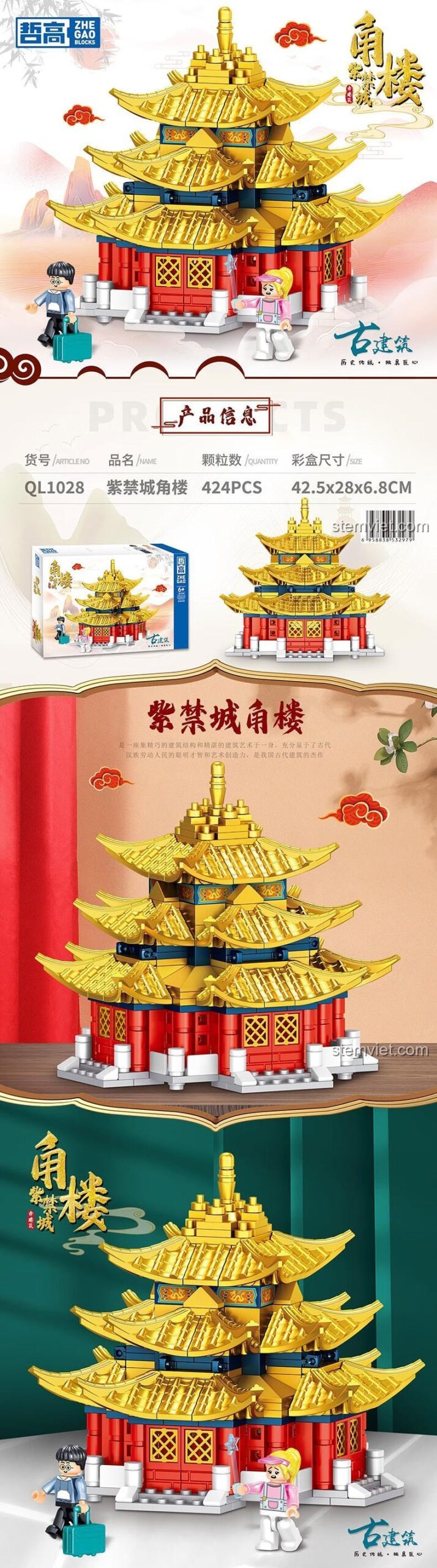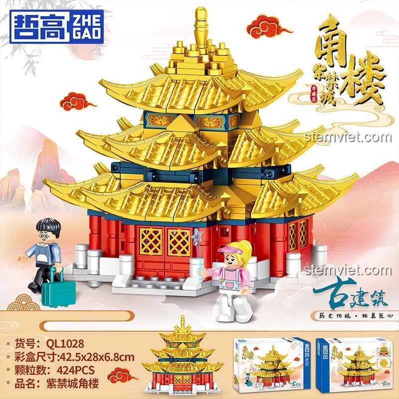 Hỡi các bậc phụ huynh và những nhà thám hiểm nhí, bạn có bao giờ mơ ước được một lần đặt chân đến Tử Cấm Thành uy nghiêm, chiêm ngưỡng những công trình kiến trúc đã đi vào huyền thoại của Trung Hoa? Gác Lâu, hay còn gọi là Tháp Canh, là một trong những biểu tượng kiến trúc độc đáo và phức tạp nhất của Cố Cung Bắc Kinh. Được xây dựng từ thời nhà Minh, mỗi Gác Lâu ở bốn góc thành là một tuyệt tác của nghệ thuật mộc, với kết cấu 3 tầng mái, 9 vì kèo, 18 cột và 72 gờ nóc, tượng trưng cho quyền lực và sự tinh xảo của kiến trúc cung đình. Giờ đây, thay vì chỉ ngắm nhìn qua sách vở, các bé 6 tuổi có thể tự tay tái hiện lại công trình vĩ đại này. Bộ lắp ráp ZHEGAO QL1028 không chỉ là một món đồ chơi, mà là một cánh cổng đưa trí tưởng tượng của bé du hành về quá khứ, khám phá câu chuyện lịch sử và văn hóa đầy màu sắc đằng sau mỗi viên gạch.