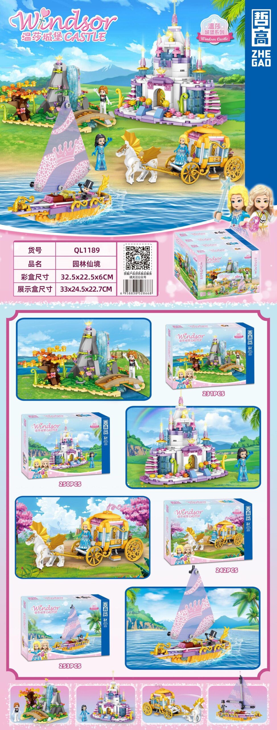 ZHEGAO QL1189: Bộ lắp ghép Lâu đài Windsor: Vườn Thần Tiên 4 Kiểu (976 mảnh) – Giấc Mơ Công Chúa