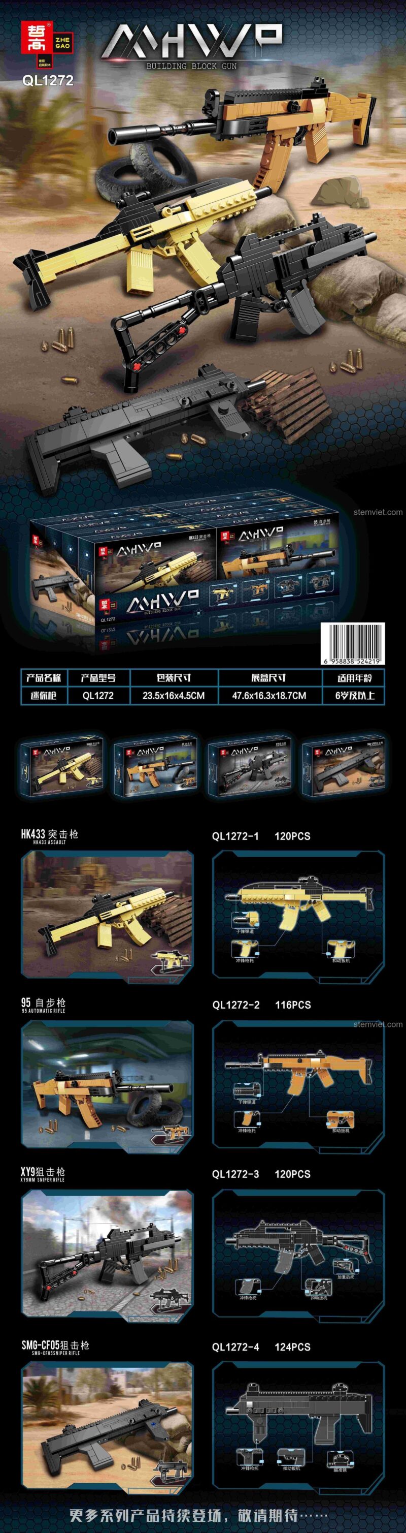 ZHEGAO QL1272-1: Bộ lắp ghép Súng tiểu liên MHWP (120 mảnh) – Hỏa Lực Tí Hon