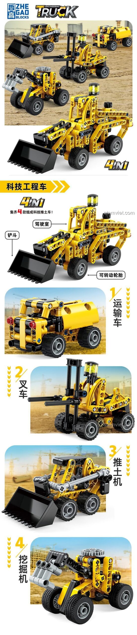 🧠 Chơi Mà Học: Phát Triển Toàn Diện Kỹ Năng Cùng ZHEGAO QL1295 Xe Công Trình Kỹ Thuật