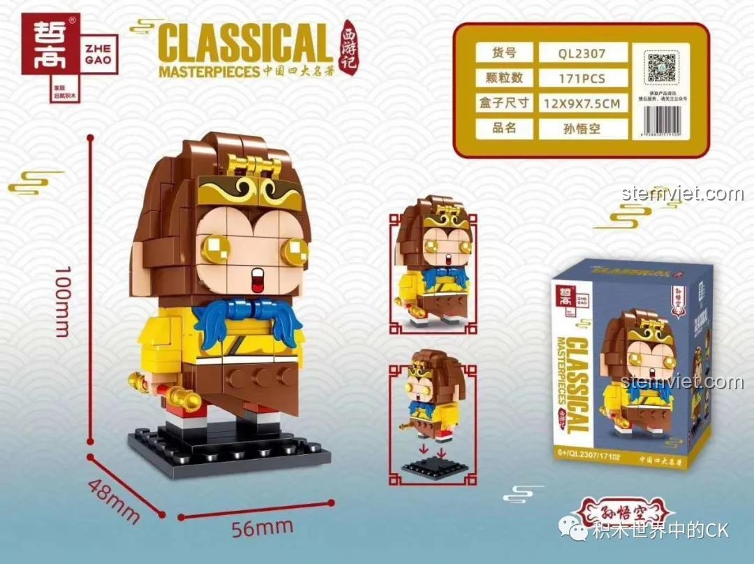 Chào mừng bạn đến với thế giới kỳ diệu của Tây Du Ký, một trong Tứ Đại Danh Tác vĩ đại nhất của văn học cổ điển Trung Quốc, ra đời vào khoảng thế kỷ 16 dưới triều nhà Minh. Trong đó, Tôn Ngộ Không – Tề Thiên Đại Thánh, là nhân vật trung tâm, biểu tượng của trí tuệ, sức mạnh và lòng dũng cảm. Bộ lắp ghép Tôn Ngộ Không QL2307 từ Zhegao không chỉ là một món đồ chơi, mà còn là cánh cửa mở ra thế giới huyền thoại ấy, giúp bé trai 6 tuổi nhà bạn hóa thân thành vị anh hùng mà mình yêu thích.