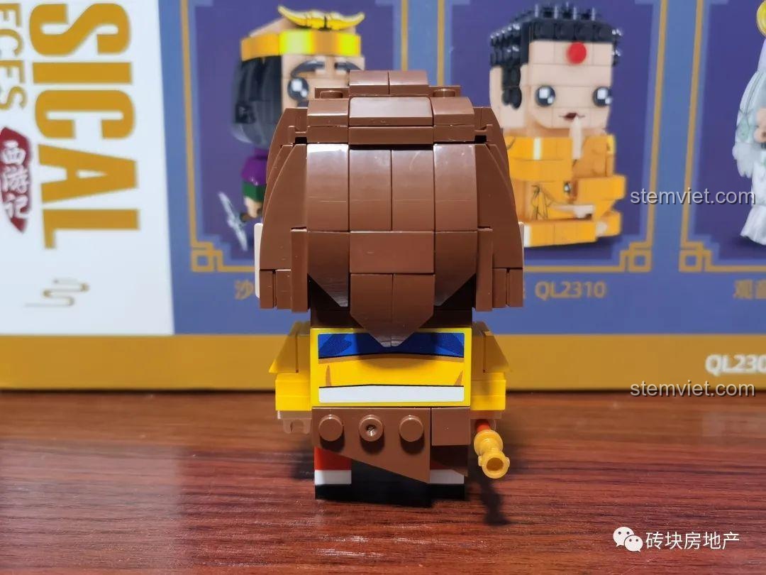 Mô hình Tôn Ngộ Không QL2307 của Zhegao nổi bật với phong cách BrickHeadz độc đáo, mang đến một Tề Thiên Đại Thánh vô cùng dễ thương và gần gũi. Với chiều cao 10cm, chiều dài 5.6cm và chiều rộng 4.8cm, mô hình này có kích thước lý tưởng để trưng bày trên bàn học, kệ sách hoặc bất cứ không gian nào trong phòng bé. Màu sắc chủ đạo là nâu, vàng, xanh dương, đỏ, đen và trắng được phối hợp hài hòa, tái hiện chân thực trang phục và đặc điểm của Tôn Ngộ Không trong Tây Du Ký.
