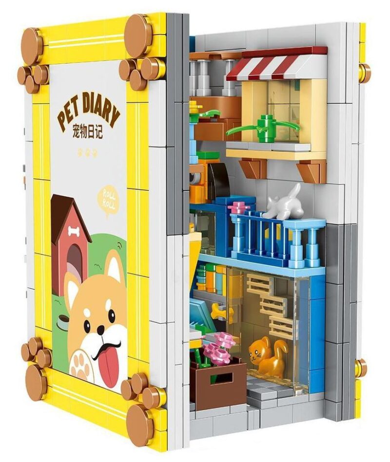 Sự kỳ diệu của Zhenbo 6775 Book nook Nhật ký thú cưng nằm ở thiết kế thông minh và đầy tính nghệ thuật. Nhìn từ bên ngoài, nó là một cuốn sách trang nhã với gáy sách mang tên “Pet Diary”, hoàn hảo để xen kẽ giữa những cuốn truyện yêu thích của bé. Nhưng khi nhìn vào bên trong, một thế giới tí hon mở ra, chi tiết đến ngỡ ngàng. Với 855 mảnh ghép được chế tác tỉ mỉ, mô hình tái hiện một góc phố châu Âu thu nhỏ.